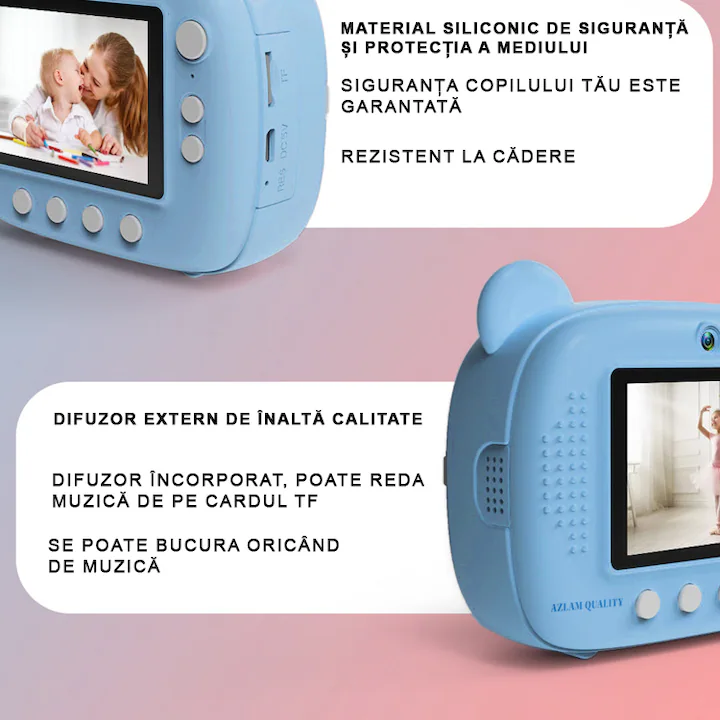 - Imprimare rapida : Multe aparate pentru copii au functii de imprimare incorporate, ceea ce permite utilizatorilor sa obtina instantaneu fotografii fara a fi nevoie de o vizita la un centru de imprimare, economisind astfel timp si bani .