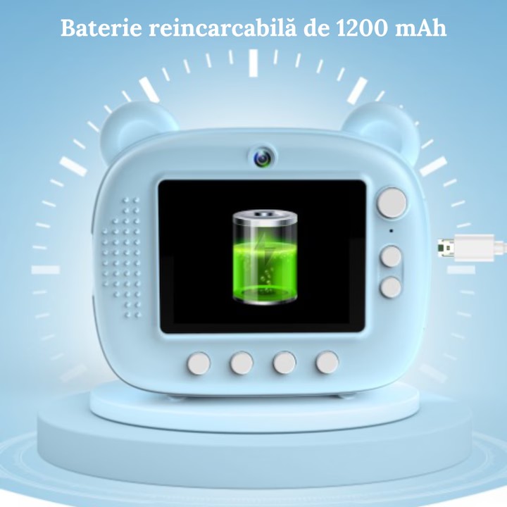 - Aceasta baterie asigura ca aparatul este mereu pregatit sa captureze momente speciale, permitand copiilor sa fotografieze fara griji pe parcursul intregii zile .