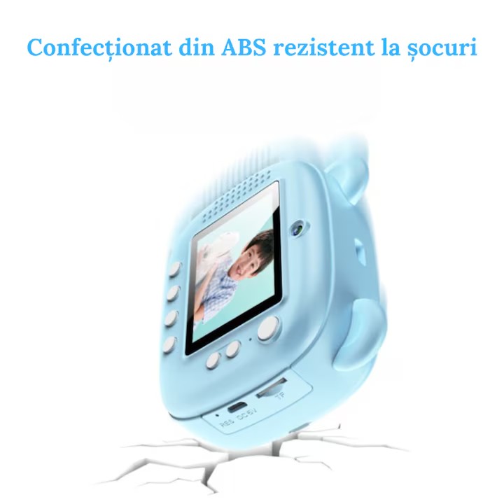 2. Aparatul foto pentru copii este o camera digitala inteligenta , dotata cu o DE IMPRIMARE INCORPORATA , care permite micutilor sa imprime instantaneu fotografiile preferate .