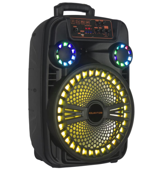Cu boxa portabilă Bluetooth KOLAV-F1208, vei aduce la viață orice petrecere sau eveniment. Experimentează sunetul puternic și versatilitatea conectivității pentru o experiență audio de neuitat!