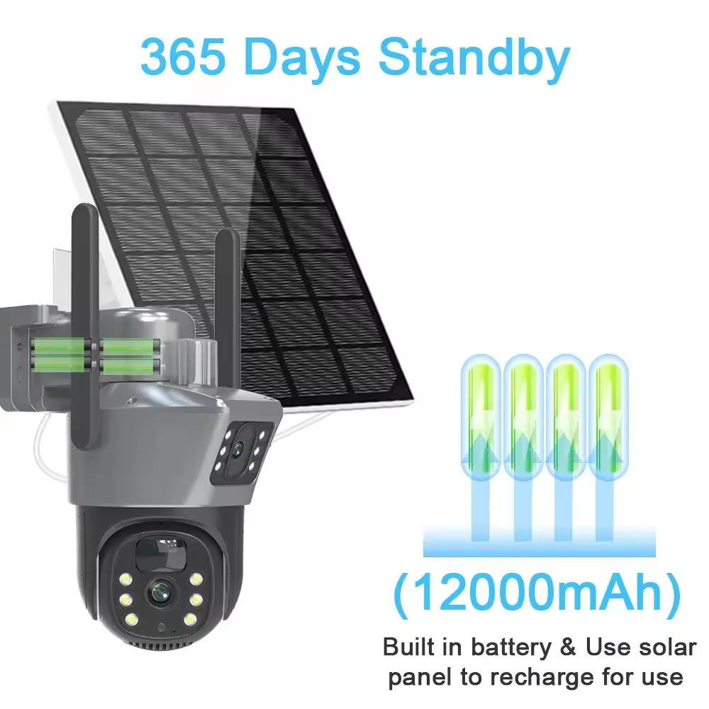 Camera de supraveghere dubla WIFI, AT PERFORMANCE®, 5MP, exterior, Ultra HD, 8X zoom, rotire, leduri lumina, comunicare bidirectionala, alarma, senzor miscare, Negru.