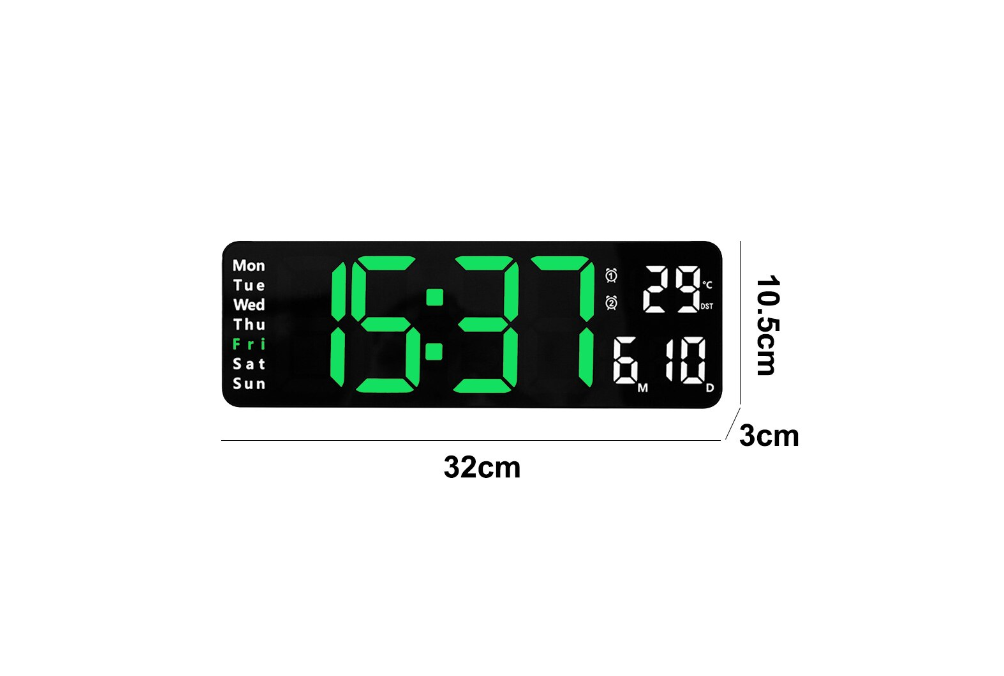 Ceas digital de perete, AT PERFORMANCE®, afisaj verde, data si temperatura, negru