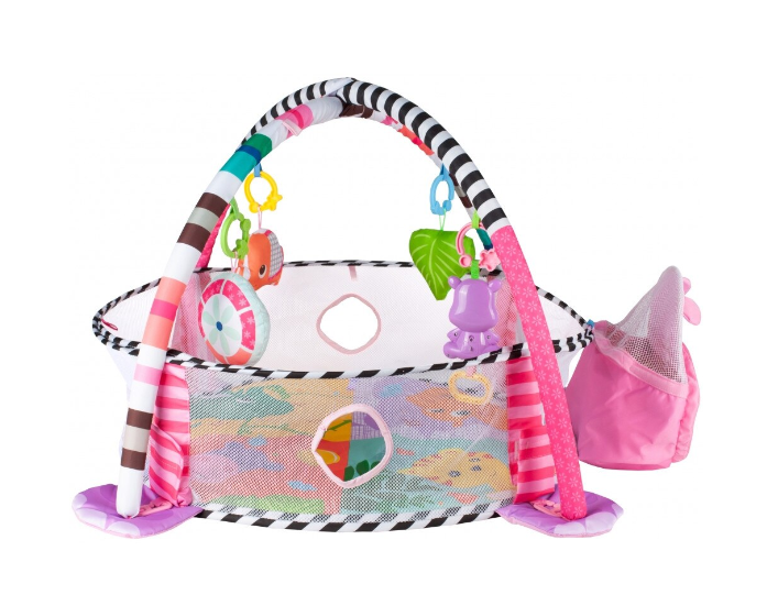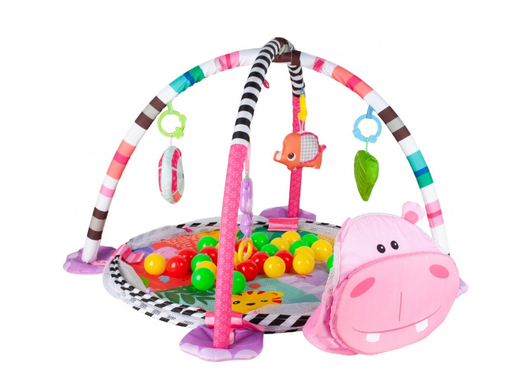 Etichetă: Centru de activitati 3 in 1 si saltea de joaca "Happy Hippo" pentru copii si bebelusi cu 4 jucarii si 30 de bile multicolore