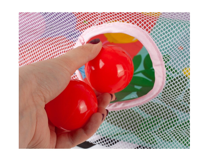 Cele 4 jucării colorate și 30 de bile multicolore adaugă un element de explorare și stimulare a simțurilor, încurajând dezvoltarea motorie și cognitivă. Micuțul nostru adoră să interacționeze cu jucăriile și să exploreze bilele colorate.