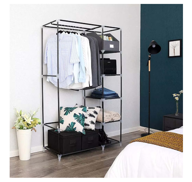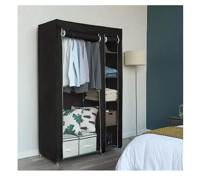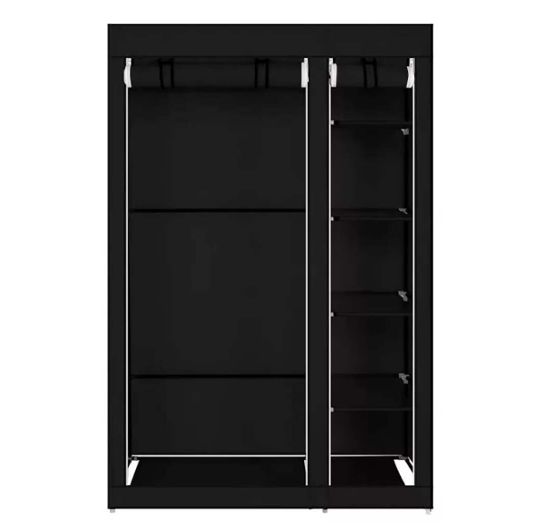 Dulap textil portabil pentru haine cu structura metalica, negru
