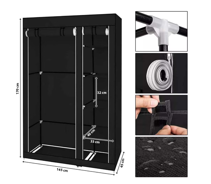 Etichete: Dulap textil portabil pentru haine cu structura metalica, Negru