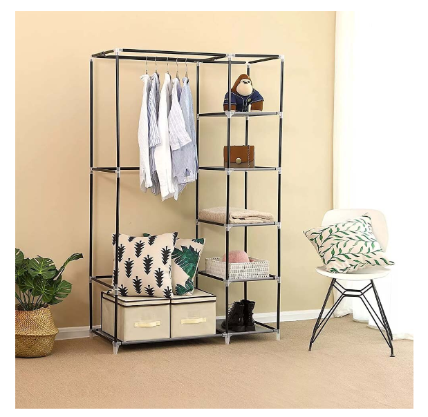 Acest dulap este util pentru organizarea articolelor si accesoriilor vestimentare. Este realizat dintr-o structura metalica si elemente pentru fixare din plastic rezistrent, acoperita cu material textil din poliester care permite circulatia aerului.