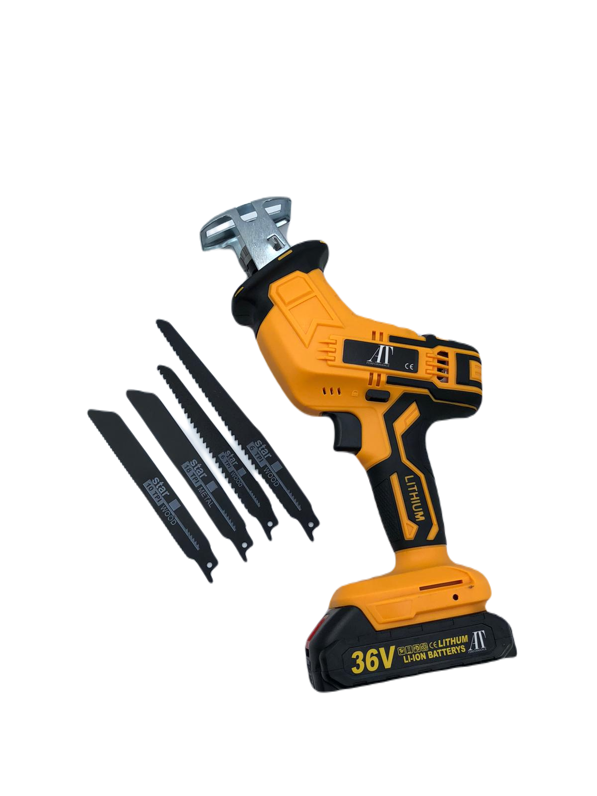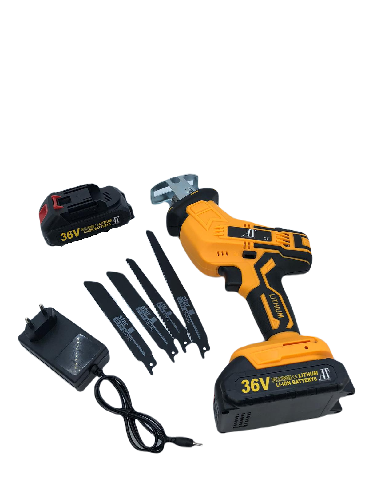 Fierastrau sabie, AT PERFORMANCE®, 3000 RPM DE 36V, 2 Baterii, 4 Panze, led iluminare, ABS/Metal.