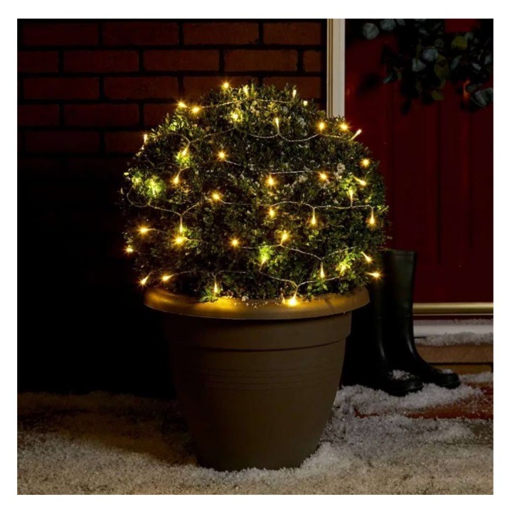 Instalatie de Craciun, At Performance, tip Liniara cu baterii, 5 m, 50 leduri, jocuri de lumini, Fir Transparent, Alb Cald