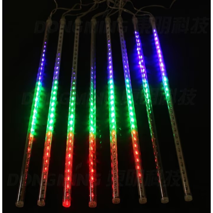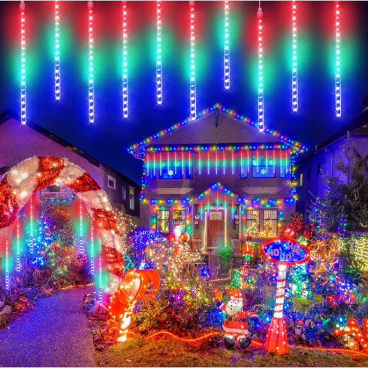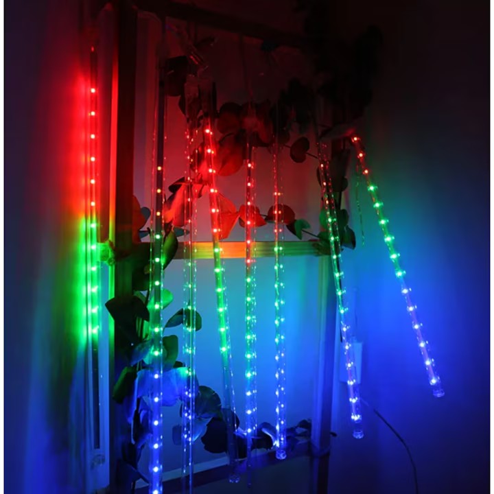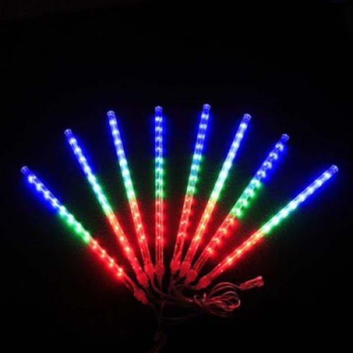 Instalatie de Craciun tip turturi, AT PERFORMANCE®, iluzia unor turturi de gheata in topire, 288 LED 8 turturi, lungime turture 44 cm, multicolor, Interconectabil.