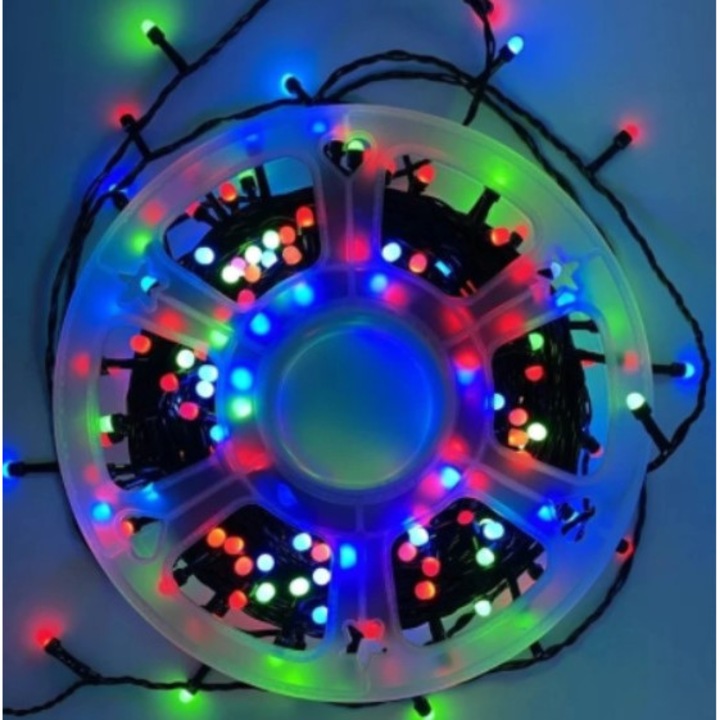 Instalatie pentru exterior de Craciun, becuri clasice, rola 50 m, pentru interior, 8 jocuri de lumini, multicolor, AT PERFORMANCE®