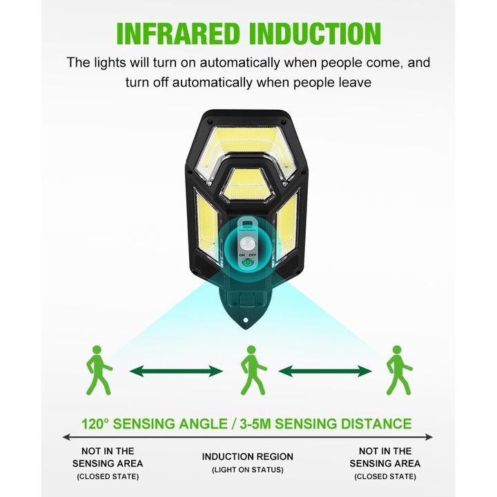 Lampa solara LED, AT PERFORMANCE, 50W, 2 moduri iluminare, Senzor miscare, Telecomanda, Negru.