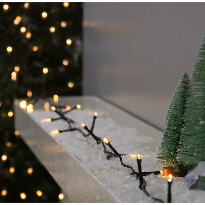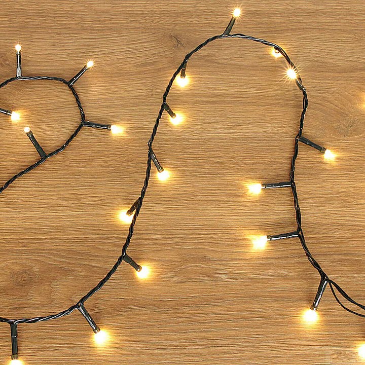 Lumina calda de culoare alba adauga o nota de eleganta si caldura decorului dumneavoastra de Craciun, iar firul negru se va integra discret in orice decor.