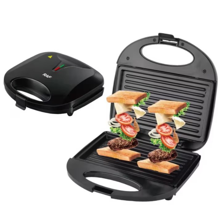 Sandwich-Maker RAF R207T, Multifuntional, AT PERFORMANCE, Fata dubla, 750 W, Negru.