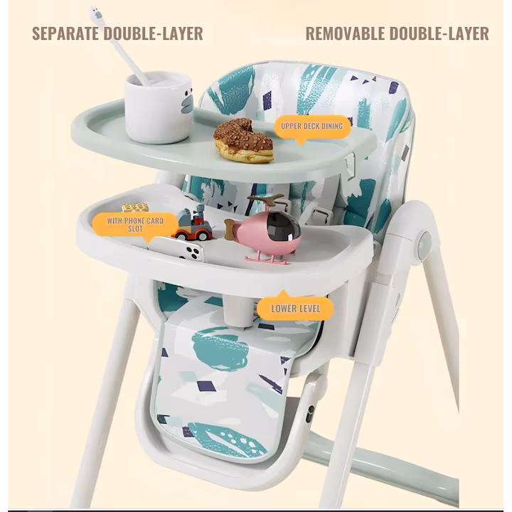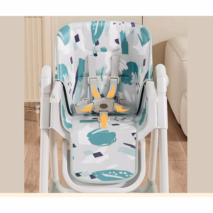 Inaltime ajustabila: Poate fi reglat in cinci pozitii diferite pentru a se adapta la diverse mese si pentru a oferi confort optim bebelusului.