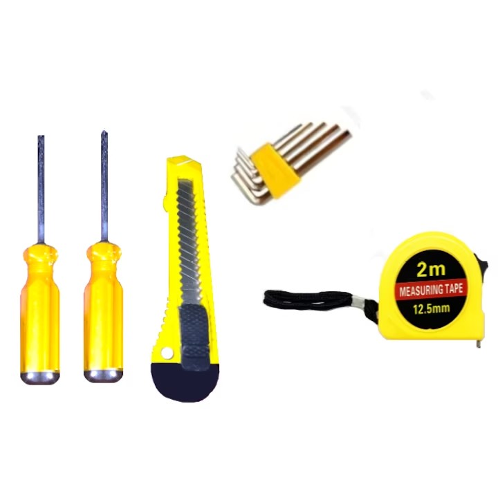 Set 9 piese AT PERFORMANCE®, Unelte de mana, surubelnite, cutter, ruleta 2 metri, imbusuri 5 marimi.