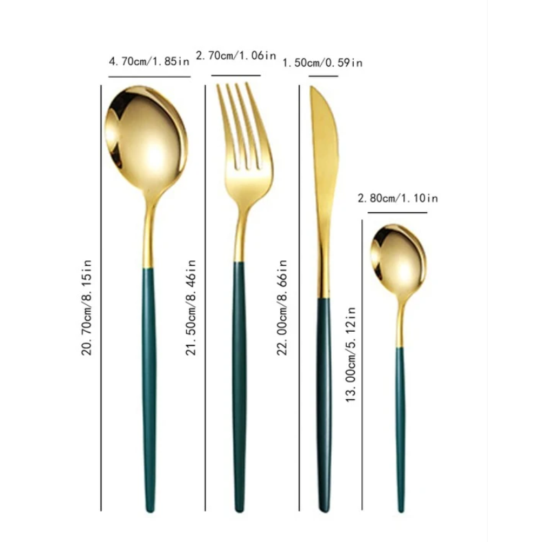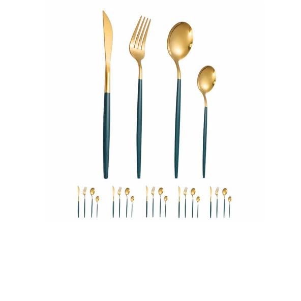 Etichete: 24 piese, Auriu / Verde, din otel inoxidabil, Set de tacamuri At Performance