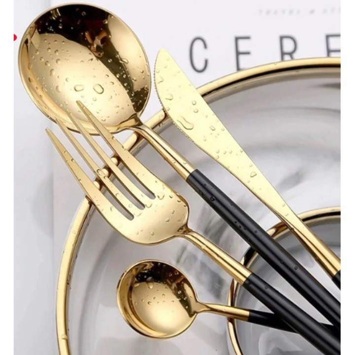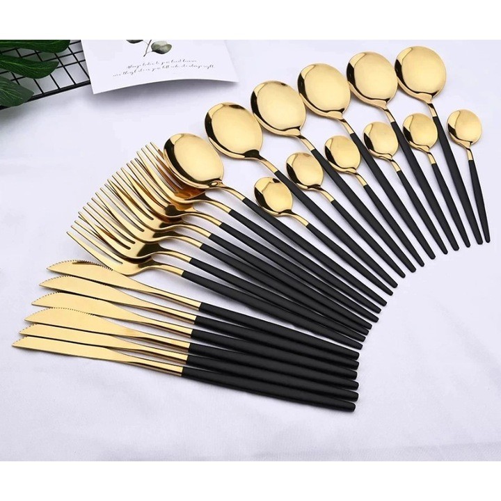 Set de tacamuri in stil portughez- culoare negru si auriu lucios