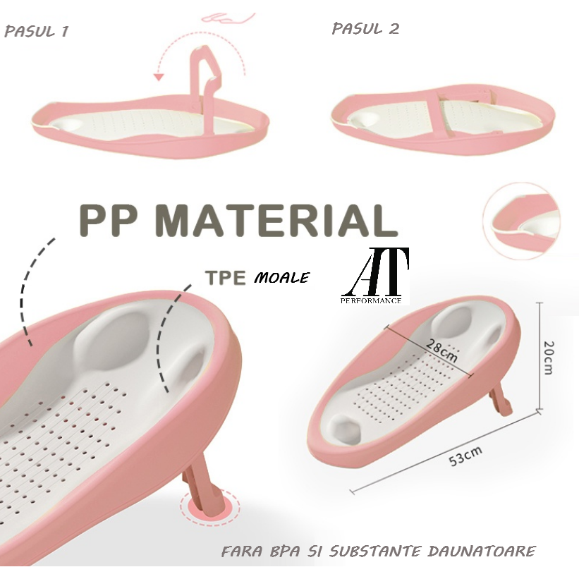 Etichete: 20cm inaitime ridicat, 53x 28cm x 7cm, anatomic, at performance, roz, Suport pentru baie copii