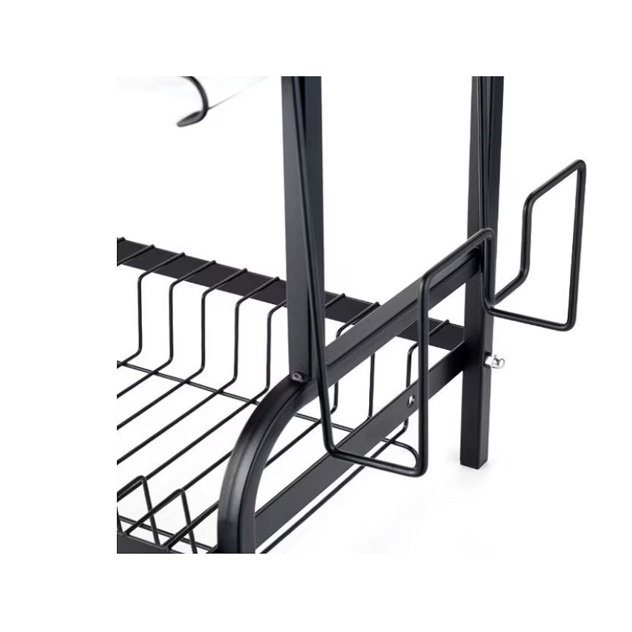 Scurgator metalic pentru vase si tacamuri, 2 niveluri, At Performance, cu suport, Metal, Negru, 53x23.5x39 cm