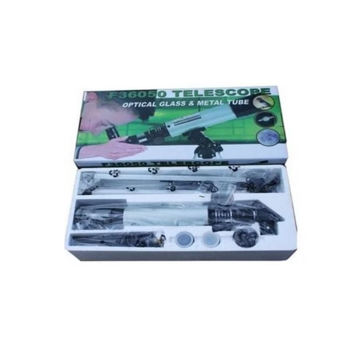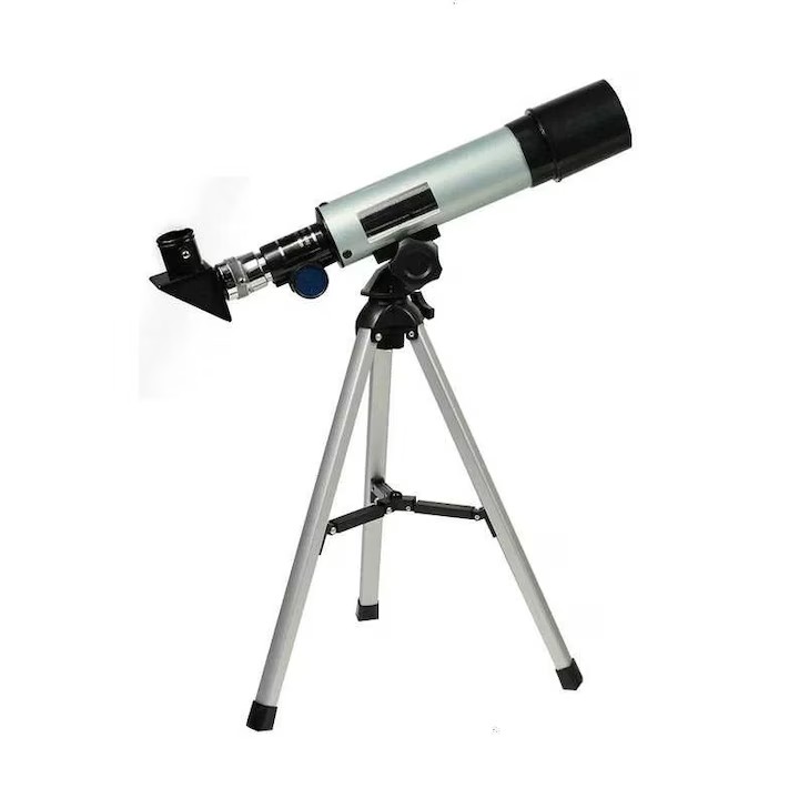 Admirati si explorati impreuna cu cei dragi o parte mica a universul cu ajutorul Telescopului astronomic F36050, 360 mm, argintiu, cu acest telescop puteti observa cratere lunare, fazele planetei Venus, benzile de pe Jupiter, inelele planetei Saturn si o mare varietate de alte obiecte astronomice.