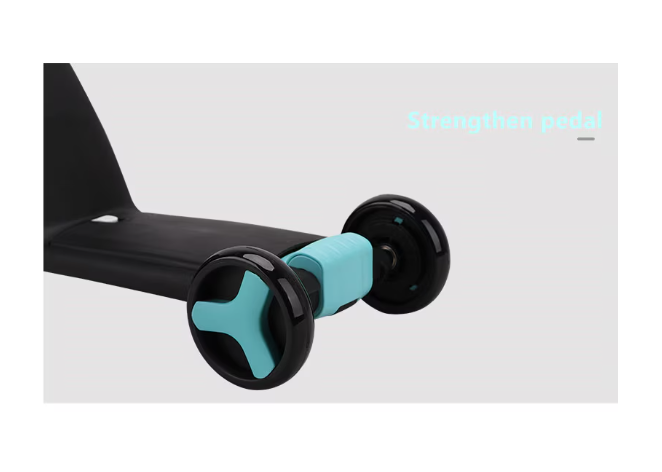 - Trecerea de la bicicleta de echilibru la trotineta sau tricicleta cu pedale se face prin apasarea unui buton si cu un mecanism inovator de inclinare si intoarcere.