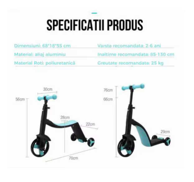 - Multifunctional- Puteti transforma cu usurinta aceasta bicicleta, intr-o bicicleta fara pedale sau o trotineta